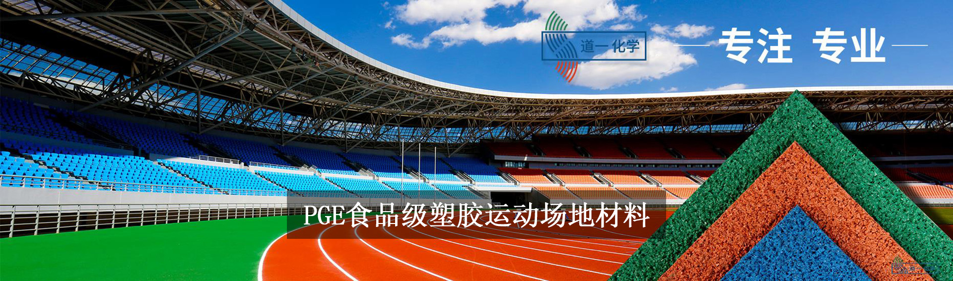 道一化學的新一代PGE運動場地材料系統經過了上千次的試驗和改良,生產出了業界最鮮艷的顏色,材料的色牢固度和抗紫外線性能均為業界最高水平,產品壽命8年以上,耐候性能更是達到了零下50攝氏度至零上80攝氏度。PGE場地材料和黏膠均不含有害成分,新國標所有毒有害物質檢測項結果均為0。